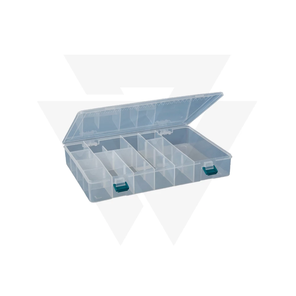 Twisterálló, minőségi anyagból készült praktikus, sűrű rekeszosztással, mely további reteszekkel tovább struktúrálható, műcsalis doboz.