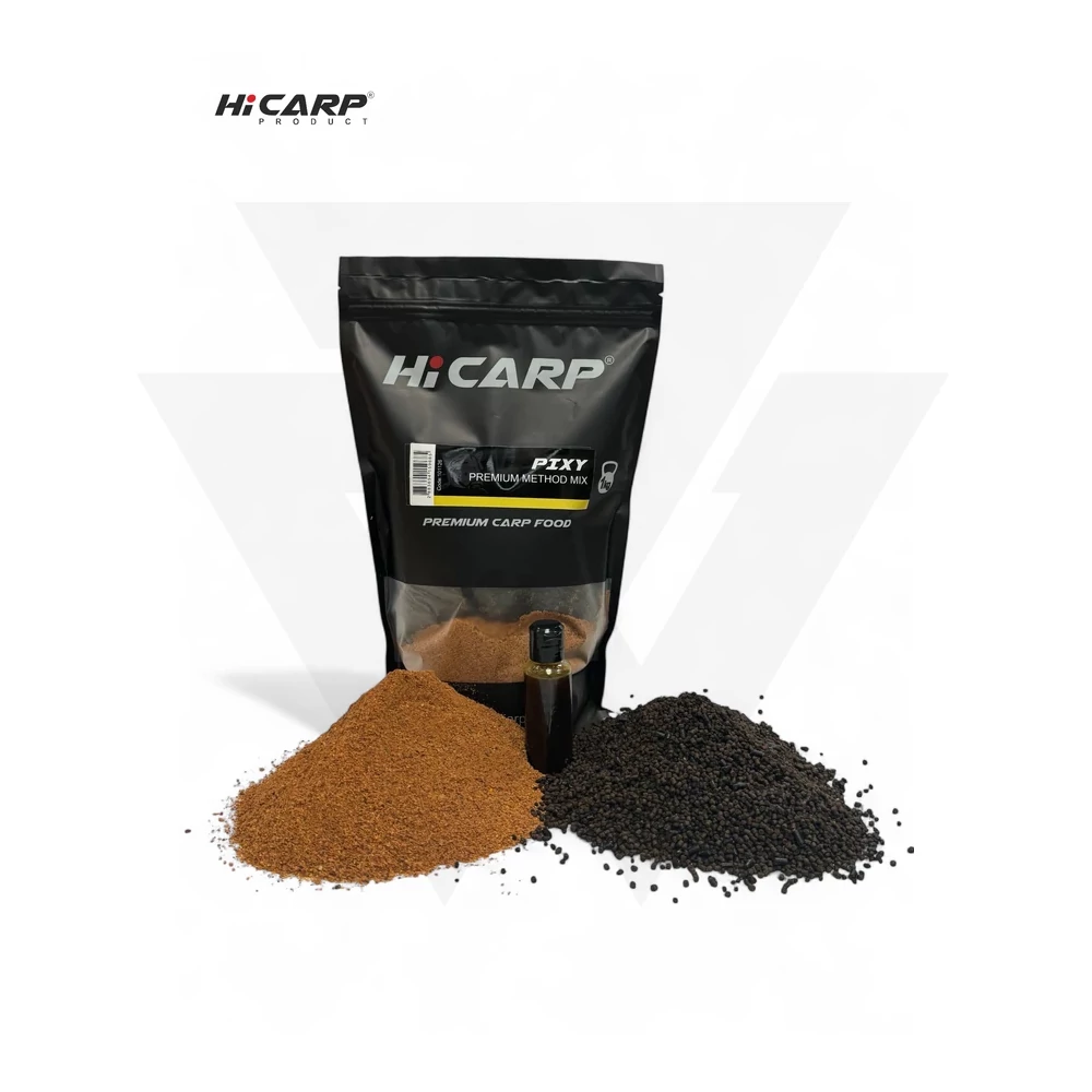 A Pixy 3in1 prémium Method Mix egy igazán különleges termék a HiCarp kínálatában. Ahogy a neve is sejteti három különböző részből áll. Egy zacskóban megtalálható 0,5 kg gyors oldódású édes speciálisan összeállított etetőanyag keverék, 0,5 kg vegyes oldódási idővel rendelkező mikro pellet keverék, melynek szemcse mérete 2 és 4 miliméter között van, valamint található a tasakban egy 30ml-es kis tégelyben édes folyékony adalék. Ki-ki a saját horgász stílusa valamint az adott horgászati helyzetnek megfelelően saját maga keverheti be a kívánt method mixet.