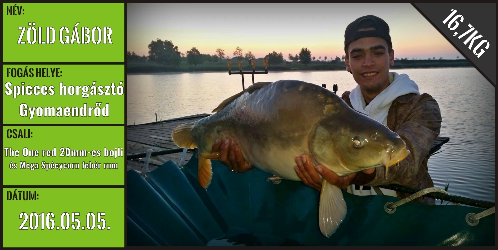 Korahajnali ébresztőként 7.5m-es törés széléről "füstölős kapással" jelentkezett ez a szép potyka egyszem 20-as The One red bojlira amely egy Mega Spécycorn fehér rum ízesítésű gumikukoricával volt kikönnyítve 14-es fonott hajszálelőkén felkìnálva.15 perces fárasztás után sikerült szákbaterelni gyors fotó és mérlegelés után visszanyerte szabadságát.